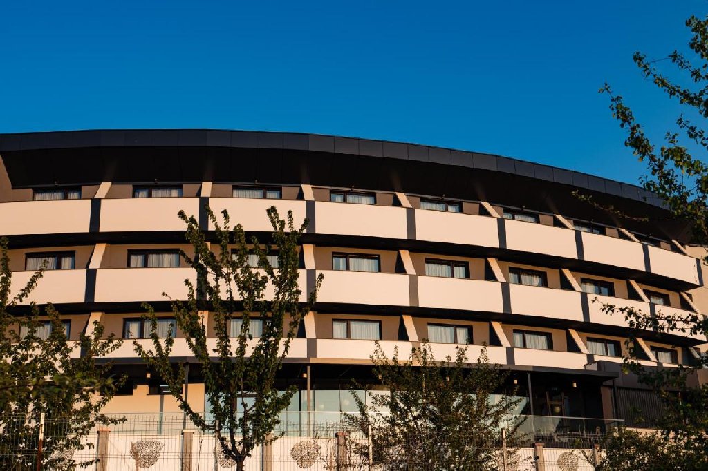 Camere: Camerele sunt echipate cu televizor LED, birou, seif si minibar. Baia este dotata cu cabina de dus, uscator de par, produse cosmetice de lux, halat de baie, papuci si prosoape. In plus turistii beneficiaza de wi-fi si acces gratuit la piscina interioara si exterioara. - Camera dubla standard cu suprafata de 26 mp, cu balcon privat, este solutia de gazduire pentru 2 persoane, sosite atat in vacanta cat si pentru intalnirile de afaceri, evenimente, team-building sau conferinte. Camera dispune de un pat mare dublu dotat cu saltea de calitate premium, lenjerie de bumbac atent selectionata si perne antialergice.