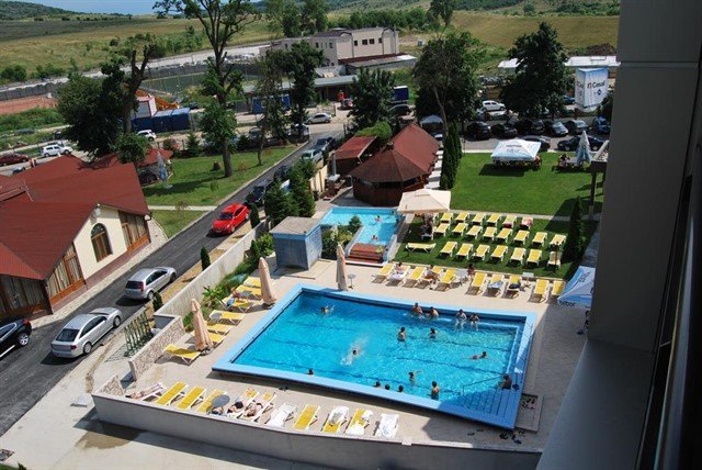 Atat piscina in aer liber, cat si cea acoperita sunt aprovizionate cu apa termala.