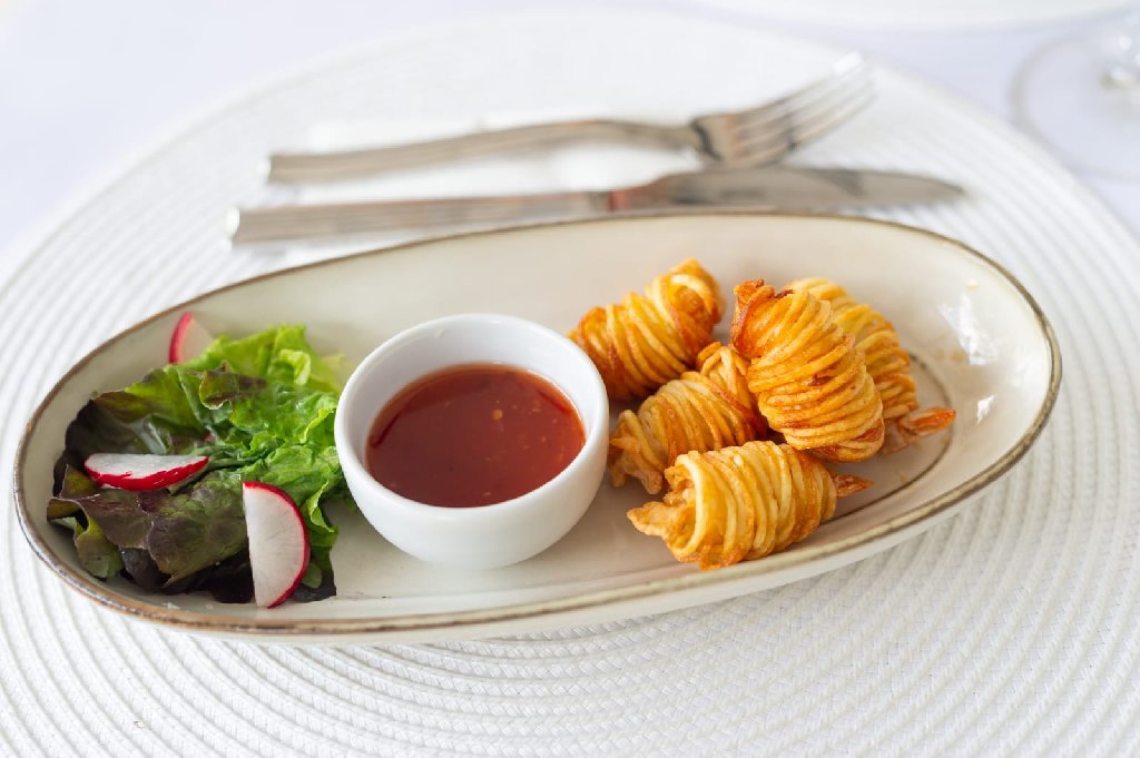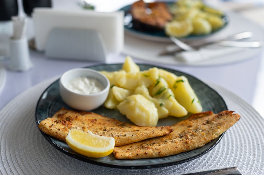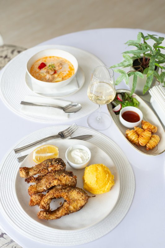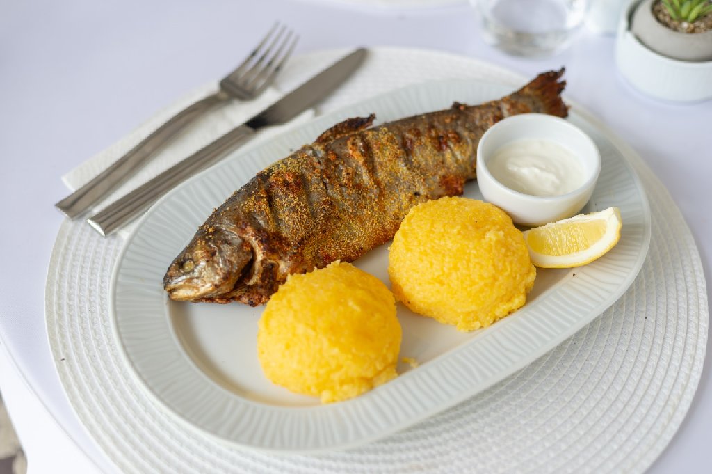 Restaurantul a la carte propune un meniu variat, cu preparate pescaresti proaspete, retete traditionale si preparate internationale, realizate cu ingrediente locale si atentie la detalii.