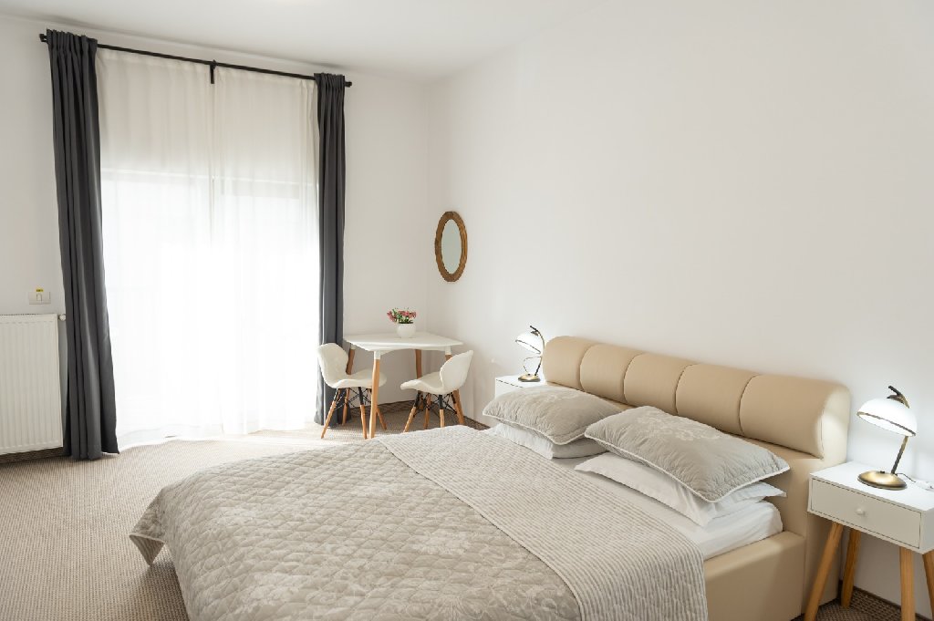 Sunt disponibile 10 camere moderne si spatioase, echipate cu toate dotarile necesare pentru un sejur confortabil: