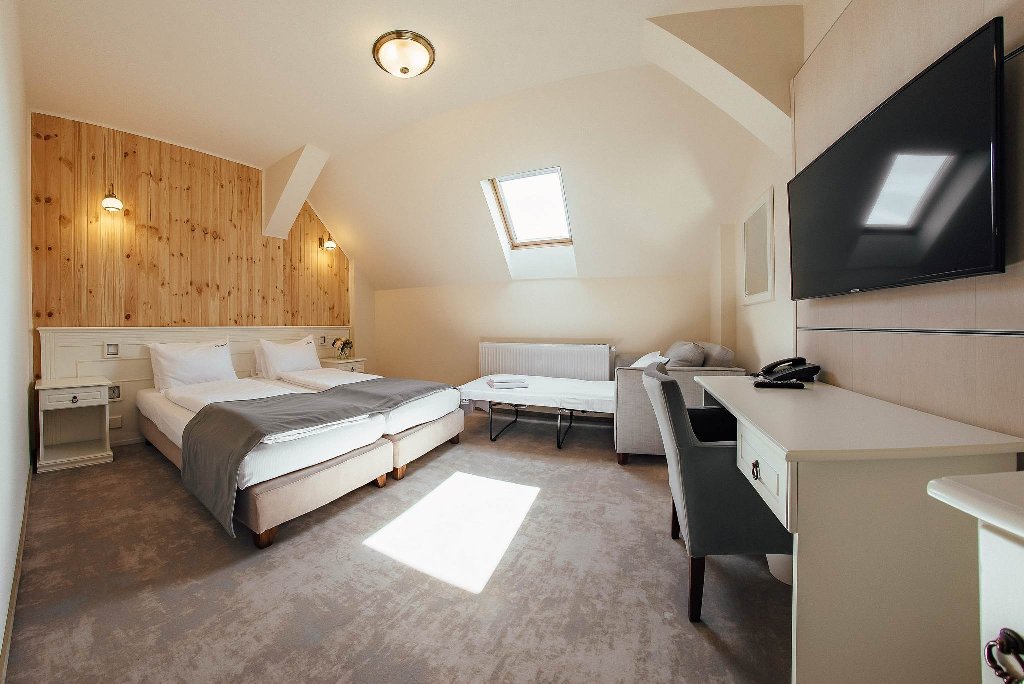 Capacitate maxima admisa in camera dubla: 2 adl + 2 copii (0-13 ani), respectiv 2 adl + 1copil (14-16 ani). Capacitatea maxim admisa in suita/ apartament: 2 adl + 3 copii, fara pat suplimentar. Se poate pune maxim un pat suplimentar in camera dubla cu pat matrimonial.