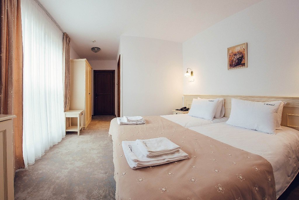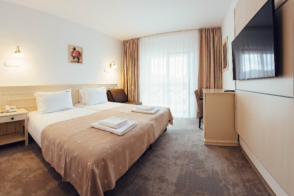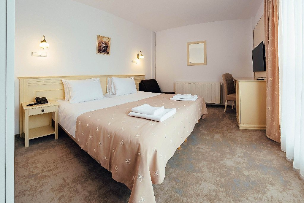 Dotari camere: minibar, TV cablu, telefon, Internet Wireless, incalzire centrala, seif, grup sanitar, prosoape, uscator de par, consumabile hoteliere, apa calda permanent. Camerele nu sunt dotate cu AC.