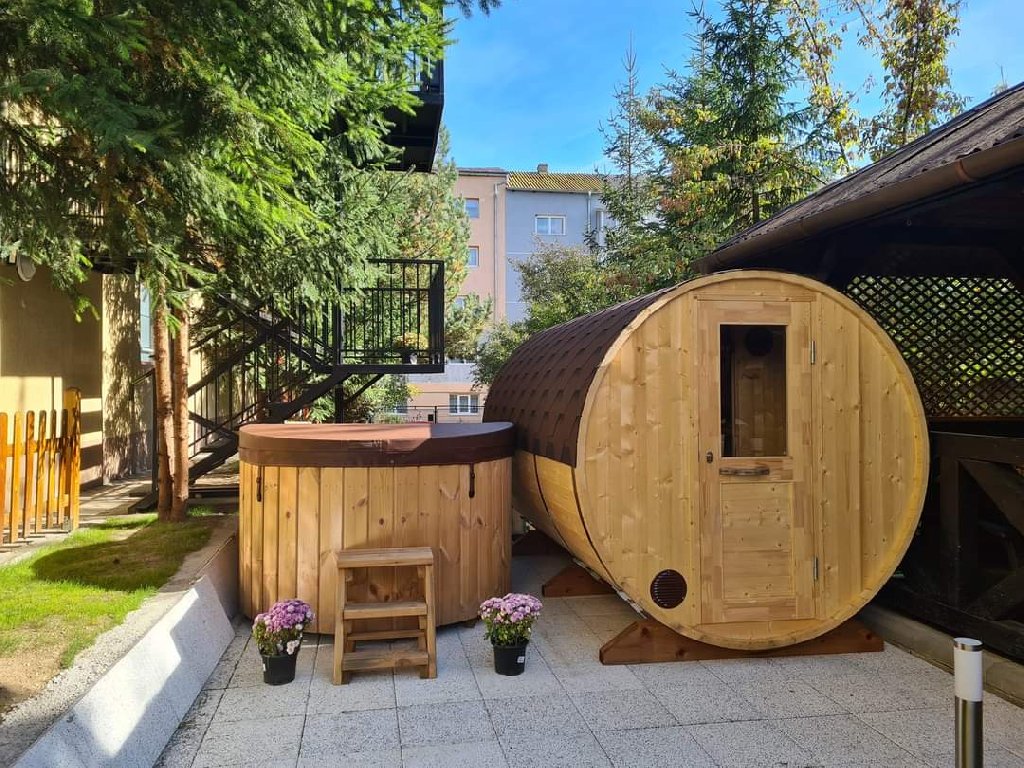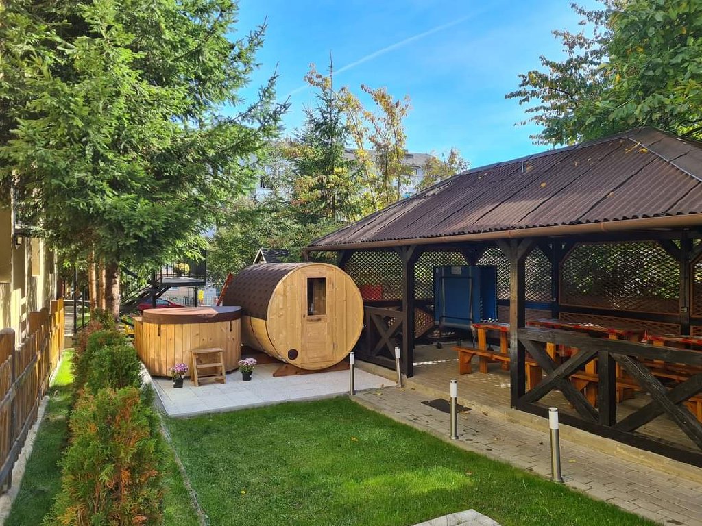 De asemenea, turistii au la dispozitie sauna si ciubar cu aeromasaj.