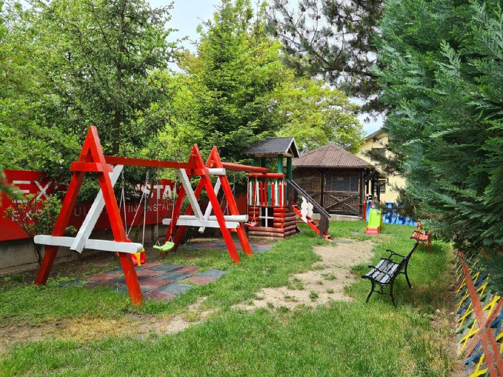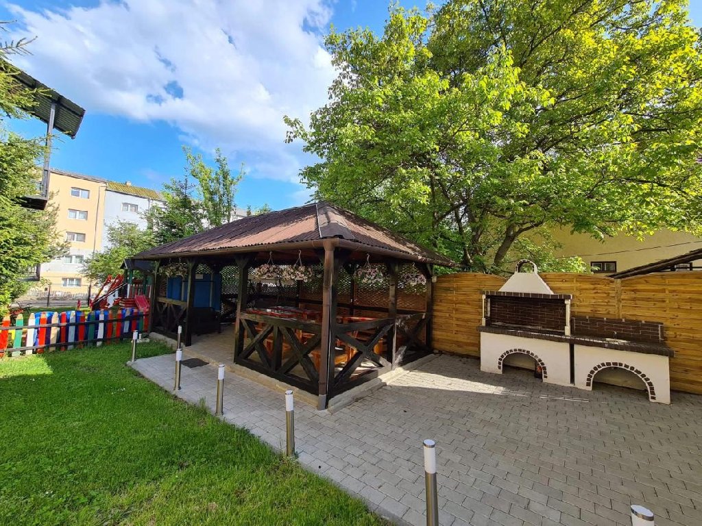 Descriere si dotari generale: o sala multifunctionala la mansarda pentru organizarea de conferinte/ traininguri sau mese festive, bucatarie, bar, parcare proprie gratuita, acces internet wireless gratuit, seif si calculator conectat la internet in receptie, foisor pentru gratar in curte, sala amenajata cu masa pentru ping-pong si loc de joaca pentru copii.