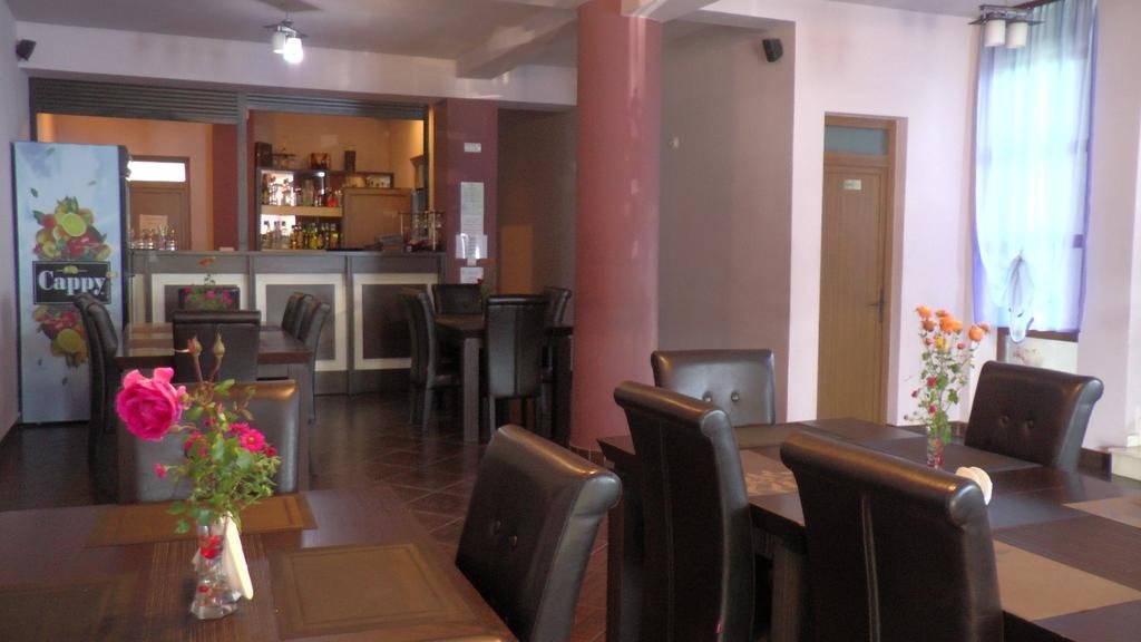 Structura: - 15 camere cu pat matrimonial, 2 apartamente, precum si camere cu 3 paturi (din care 2 cu pat matrimonial si un pat single si una cu 3 paturi single) si 1 camera cu 4 paturi single, toate dotate individual cu bai complet echipate, tv color si cablu tv, telefon si minibar; - restaurantul are o capacitate de minim 350 de locuri, unde se pot organiza diverse evenimente (nunti, botezuri, zile de nastere si onomastici etc. ), cu un meniu traditional bucovinean, cat si la alegerea clientilor; - sala de conferinte modern echipata cu o capacitate de 45 de locuri si sauna;