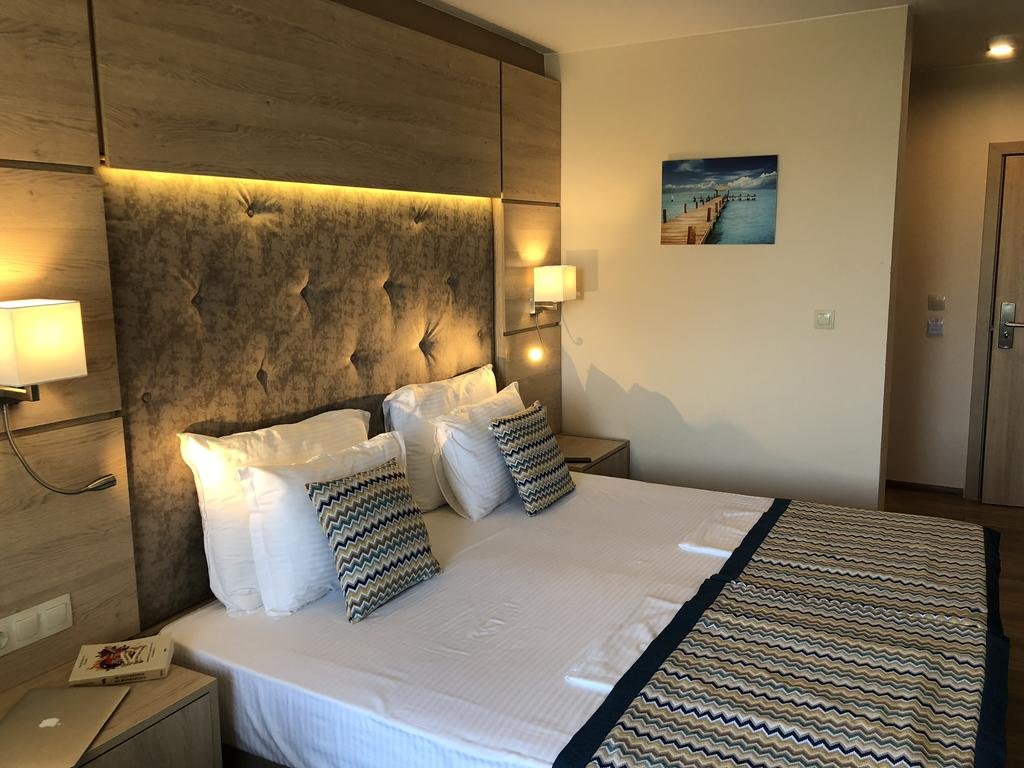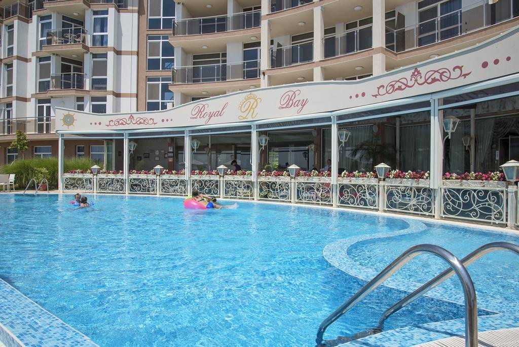 Royal Bay Resort este un complex de lux situat chiar pe malul marii, la unul dintre cele mai pitoresti golfuri din jurul Kavarnei. Complexul este situat intr-una dintre locatiile mai putin cunoscute, dar extraordinar de frumoase de pe coasta nordica a Marii Negre bulgare - zona Ikantalaka situata intre Kavarna si Balcic, renumita pentru natura sa frumoasa, aproape neatinsa de oameni. Locul perfect pentru oamenii care cauta pace si liniste combinate cu mancare de inalta calitate, confort si servicii bune. Camere pentru persoane cu dizabilitati. Distanta pana la Balcic - 10 km, distanta pana la centrul orasului Kavarna - 11 km. Facilitati -Servicii de spalatorie si calcatorie (contra cost); -Internet wireless gratuit; -Restaurant principal; -Bar pe plaja; -Piscina; -Plaja privata - plaja publica; -Parcare (contra cost); -Masaj (contra cost) -Doctor de garda (contra cost) Cazare Check in: ora 14:00. Check out: ora 11:00. Cladire prima linie 5 etaje, 2 lifturi. Studio small - aprox. 25 m2 (max 2+1) -Toate studiourile sunt in cladirea principala si au vedere la mare. O camera mare cu aer conditionat, TV de 32 inch, TV prin cablu, podea cu gresie/laminat, canapea, dulap, mini-frigider gratuit, balcon cu vedere la mare, baie cu dus si uscator de par. Capacitatea maxima este de 2 adulti si 1 copil sau 3 adulti (3 adulti sunt permise, dar nu sunt recomandate si reclamatii privind spatiul si confortul nu sunt acceptate). 1-bedroom apartment - aprox. 65 m2 (max 2+2, 3+1, 4+0) -cu pat matrimonial sau paturi twin, canapea extensibila. Acestea sunt situate in cladirea principala si au vedere la mare. Sunt compuse dintr-un dormitor si un living separat de o usa, balcon cu vedere la mare, TV prin cablu, TV de 32 inchi, aer conditionat, zona de relaxare, teracota/parchet laminat, dulap, baie cu dus si uscator de par, mini frigider gratuit. Maximum ocupare 4 adulti (2 canapea obisnuita si 1 canapea extensibila dubla). Toate unitatile A/C individual, TV satelit, telefon, mini-bar (contra cost), baie cu dus si uscator de par, balcon cu vedere la mare, wi-fi gratuit. Camere potrivite pentru persoane cu dizabilitati. Seif (gratuit/la receptie), Cladire gradina 3 etaje, fara lift. Camere DBL complet renovate 2018. Double room- aprox. 26m2 (max 2+1, 2+2) - Camerele duble sunt in cladirea 2 (de la gradina). Au doua paturi obisnuite si o canapea extensibila (exista un numar limitat de camere cu paturi supraetajate), aer conditionat, TV (32 inch), cablu TV, mini-frigider gratuit, teracota, balcon (unele). camerele au vedere partiala la mare, iar unele dintre ele au vedere la gradina), seif in camera, baie cu dus. Ocuparea maxima este de 2 adulti si 2 copii sau 3 adulti (3 adulti sunt permisi, dar nerecomandat si reclamatii legate de spatiu si confort). nu sunt acceptate). In camere: A/C individual, TV satelit, telefon, mini-bar (contra cost), seif in camera (gratuit), baie cu dus si uscator de par, balcon, wi-fi gratuit. Camerele au vedere la mare si la parcCopii: Patut (gratuit, la cerere), scaune pentru copii in restaurante. Sectiunea pentru copii a piscinei in aer liber, club pentru copii. Sport si divertisment Gratuit: Piscina exterioara cu sezlonguri si umbrele de soare gratuite (in functie de disponibilitate). Plaja proprie cu sezlonguri si umbrele gratuite (in functie de disponibilitate) *Seif in camera (doar in Garden Building) *Wi-Fi in camere si in zonele comune Plata suplimentara: masaj. Animalele de companie sunt acceptate cu confirmare prealabila din partea hotelului, pana la 5 kg/10 lv pe zi. Parcare: Parcare cu plata disponibila, 16 bgn pe zi. Gratuit: Plaja privata cu sezlonguri si umbrele de soare + bar pe plaja