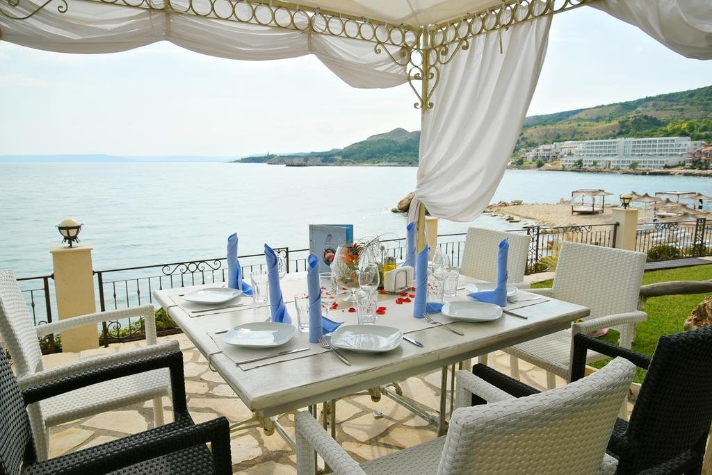 Royal Bay Resort este un complex de lux situat chiar pe malul marii, la unul dintre cele mai pitoresti golfuri din jurul Kavarnei. Complexul este situat intr-una dintre locatiile mai putin cunoscute, dar extraordinar de frumoase de pe coasta nordica a Marii Negre bulgare - zona Ikantalaka situata intre Kavarna si Balcic, renumita pentru natura sa frumoasa, aproape neatinsa de oameni. Locul perfect pentru oamenii care cauta pace si liniste combinate cu mancare de inalta calitate, confort si servicii bune. Camere pentru persoane cu dizabilitati. Distanta pana la Balcic - 10 km, distanta pana la centrul orasului Kavarna - 11 km. Facilitati -Servicii de spalatorie si calcatorie (contra cost); -Internet wireless gratuit; -Restaurant principal; -Bar pe plaja; -Piscina; -Plaja privata - plaja publica; -Parcare (contra cost); -Masaj (contra cost) -Doctor de garda (contra cost) Cazare Check in: ora 14:00. Check out: ora 11:00. Cladire prima linie 5 etaje, 2 lifturi. Studio small - aprox. 25 m2 (max 2+1) -Toate studiourile sunt in cladirea principala si au vedere la mare. O camera mare cu aer conditionat, TV de 32 inch, TV prin cablu, podea cu gresie/laminat, canapea, dulap, mini-frigider gratuit, balcon cu vedere la mare, baie cu dus si uscator de par. Capacitatea maxima este de 2 adulti si 1 copil sau 3 adulti (3 adulti sunt permise, dar nu sunt recomandate si reclamatii privind spatiul si confortul nu sunt acceptate). 1-bedroom apartment - aprox. 65 m2 (max 2+2, 3+1, 4+0) -cu pat matrimonial sau paturi twin, canapea extensibila. Acestea sunt situate in cladirea principala si au vedere la mare. Sunt compuse dintr-un dormitor si un living separat de o usa, balcon cu vedere la mare, TV prin cablu, TV de 32 inchi, aer conditionat, zona de relaxare, teracota/parchet laminat, dulap, baie cu dus si uscator de par, mini frigider gratuit. Maximum ocupare 4 adulti (2 canapea obisnuita si 1 canapea extensibila dubla). Toate unitatile A/C individual, TV satelit, telefon, mini-bar (contra cost), baie cu dus si uscator de par, balcon cu vedere la mare, wi-fi gratuit. Camere potrivite pentru persoane cu dizabilitati. Seif (gratuit/la receptie), Cladire gradina 3 etaje, fara lift. Camere DBL complet renovate 2018. Double room- aprox. 26m2 (max 2+1, 2+2) - Camerele duble sunt in cladirea 2 (de la gradina). Au doua paturi obisnuite si o canapea extensibila (exista un numar limitat de camere cu paturi supraetajate), aer conditionat, TV (32 inch), cablu TV, mini-frigider gratuit, teracota, balcon (unele). camerele au vedere partiala la mare, iar unele dintre ele au vedere la gradina), seif in camera, baie cu dus. Ocuparea maxima este de 2 adulti si 2 copii sau 3 adulti (3 adulti sunt permisi, dar nerecomandat si reclamatii legate de spatiu si confort). nu sunt acceptate). In camere: A/C individual, TV satelit, telefon, mini-bar (contra cost), seif in camera (gratuit), baie cu dus si uscator de par, balcon, wi-fi gratuit. Camerele au vedere la mare si la parcCopii: Patut (gratuit, la cerere), scaune pentru copii in restaurante. Sectiunea pentru copii a piscinei in aer liber, club pentru copii. Sport si divertisment Gratuit: Piscina exterioara cu sezlonguri si umbrele de soare gratuite (in functie de disponibilitate). Plaja proprie cu sezlonguri si umbrele gratuite (in functie de disponibilitate) *Seif in camera (doar in Garden Building) *Wi-Fi in camere si in zonele comune Plata suplimentara: masaj. Animalele de companie sunt acceptate cu confirmare prealabila din partea hotelului, pana la 5 kg/10 lv pe zi. Parcare: Parcare cu plata disponibila, 16 bgn pe zi. Gratuit: Plaja privata cu sezlonguri si umbrele de soare + bar pe plaja All inclusive ***Restaurant principal -Mic dejun bufet- rece si cald, gustari, fructe, bucatarie deschisa Bauturi calde, apa minerala, suc 08:00 - 10:00 - Pranz bufet - salate, aperitive, supe, cursuri, deserturi, fructe, show-cooking Bauturi racoritoare, bere, vin, bauturi calde 12:00 - 14:00 - Cina bufet - salate, aperitive, supe, feluri de mancare, deserturi, fructe, show-cooking. Bauturi racoritoare, bere, vin, bauturi calde 18:30 - 21:00 *Gustari /Mic dejun tarziu Prajituri, prajituri Lapte cald, cafea, ceai, apa. 11:00 - 12:00 *Prajituri, prajituri, fructe, sandviciuri 15:00 - 17:00 *Alcool bulgaresc, vin, bauturi racoritoare, bauturi calde, bere, lapte fierbinte, cafea, ceai, apa. 10:00 - 23:00 *Inghetata12:00 - 17:00 ***Lobby Bar- Bauturi 10:00 - 23:00 -Bea alcool bulgaresc, bere - rakia, whisky, vodca, mastika, rom, gin -Bautura fara alcool - bauturi racoritoare, suc- suc si bauturi racoritoare -Bauturi calde - lapte, ceai, cafea -Vin - alb si rosu *Beach Bar