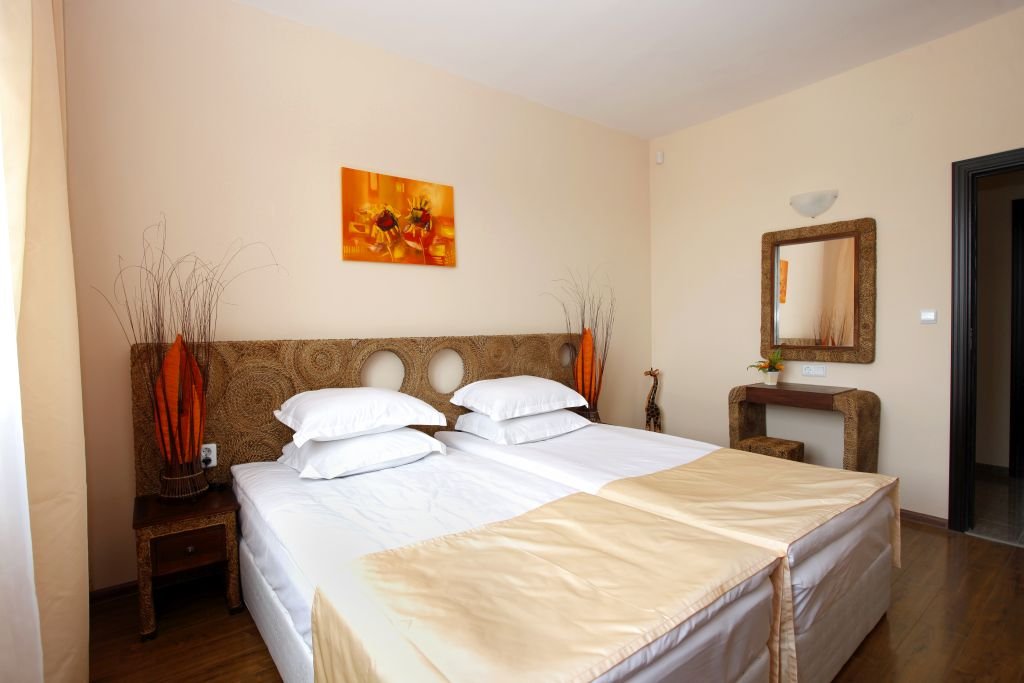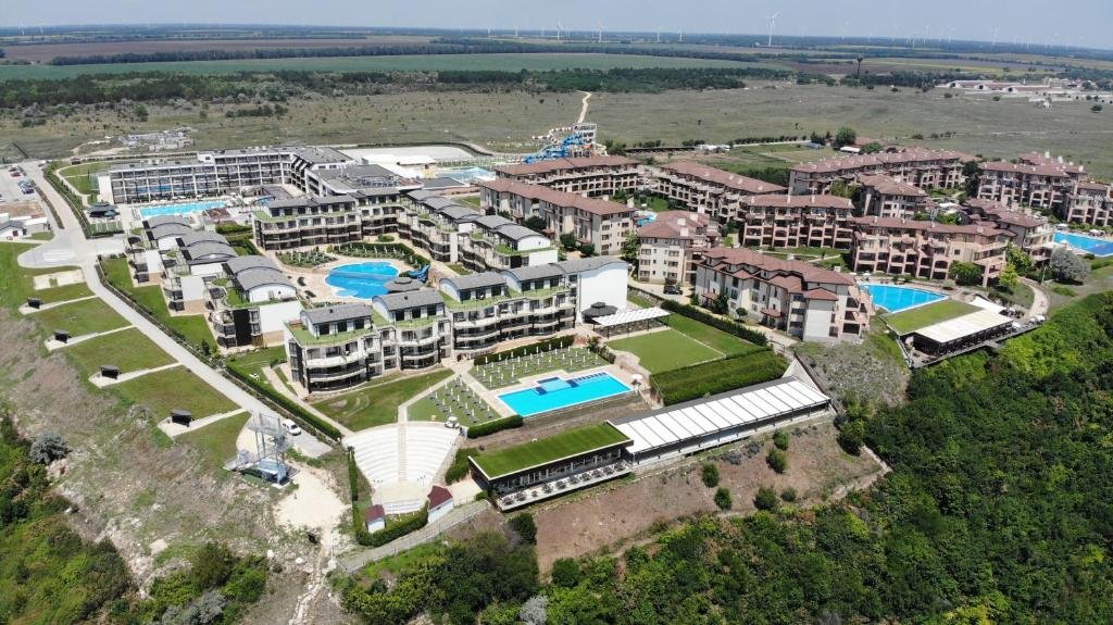 Topola skies Golf & Spa este un complex privat situat pe coasta de nord a Marii Negre, intre orasele Kavarna si Balcic. Partea de nord a Varnei este la doar 35 de minute. Distanta pana la plaja este de 500 m. Distanta pana la Varna - 55 km; pana la Balcic - 12 km; pana la Capul Kaliakra - 17 km. Facilitati Statiunea a fost construita in 2009, renovata in 2016 si este formata din mai multe cladiri cu 3-4 etaje care adapostesc apartamente cu unul si doua dormitoare si o cladire cu camere de hotel, construita in 2017-2018. Statiunea dispune de receptie cu seif (contra cost), terenuri de tenis, piscina infinita, piscine exterioare pe doua nivele, piscina pentru copii, piscina interioara (sezoniera), 2 restaurante principale si The Bistro, lobby bar, baruri la piscina, 2 sedinte. sali cu capacitate maxima 120pax fiecare, Centru de Wellness si Relaxare si centru unic DREAM SPA, serviciu de inchiriere de masini/biciclete, servicii de trezire, Wi-Fi gratuit in zonele publice si de conferinte si in toate camerele, schimb valutar, posta servicii, bancomat, magazin, servicii de spalatorie si curatatorie chimica, parcare, servicii medicale (contra cost, la cerere) Cazare Ora de check-in: 15:00 p.m. Ora check out: 12:00 a.m. In total 392 de unitati. DBL 2+1/2+2: aprox 35 mp. Capacitate maxima - 3 adulti cu 1 copil. *Patul suplimentar este o canapea extensibila (cu dimensiunea 140/200 cm), nu se accepta reclamatii cu privire la confortul si spatiul unitatii DBL 2+1/2+2 SEA: aprox 35 mp. Capacitate maxima - 3 adulti cu 1 copil.*Patul suplimentar este o canapea extensibila (cu dimensiunea 140/200 cm), nu se accepta reclamatii privind confortul si spatiul unitatii. DBL 2+1/2+2 DELUXE: aprox 35 mp. Vedere la mare. Camerele deluxe sunt la fel ca si camerele standard si la mare ca o zona, situate intr-o cladire nou construita langa piscina Infinity. Capacitate maxima 3 adulti si 1 copil. 1-bedroom apartment pool/sea view - (min 2+0, max 2+2/3+1); aprox.60 mp. Pat dublu (2 paturi de o persoana alaturate) iar patul suplimentar este o canapea dubla extensibila. 1-bedroom apartment deluxe sea view - (min 2+0, max 2+2/3+1); aprox. 60mp. Pat dublu (2 paturi de o persoana alaturate) iar patul suplimentar este o canapea dubla extensibila. Apartamentele dispun de chicineta, ceainic, mini-frigider, bideu (doar in apartamente). 1-bedroom Premium apartments - (max.2+2/3+0), aprox. 60mp, un dormitor cu pat matrimonial si saltea de calitate superioara si living cu canapea extensibila; masa cu scaune, chicineta, baie cu dus/cada, WC si bideu, ferestre, balcon mare mobilat, fierbator electric, frigider, TV LED, vedere frontala la mare. Doar la cerere! 2-bedroom apartments - (max. 4+0 in deluxe /5+1 in piscina sau vedere la mare) aprox.80 mp. Doua dormitoare separate, doua bai private cu cada. Paturi duble in dormitoare (2 paturi de o persoana alaturate) iar patul suplimentar este o canapea dubla extensibila in living. Piscina, mare, deluxe. Apartamentele dispun de chicineta, ceainic, mini-frigider, bideu (doar in apartamente). Toate unitatile au aer conditionat, cablu TV, telefon, Wi-Fi (gratuit), ceainic electric, frigider, frigider, baie cu dus si cada si articole de toaleta, uscator de par, cu balcon/terasa, mobilata cu masa si scaune. Camere potrivite pentru persoane cu dizabilitati - 1, la cerere. *Camere si apartamente pentru nefumatori *In cladirea principala exista DBL Standard si DBL Standard vedere mare. *DBL Deluxe sunt situate langa piscina infinita in F.