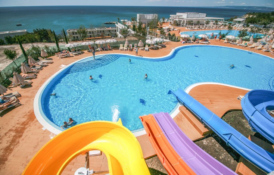 White Lagoon Resort este situat intre orasele Balcic si Kavarna, pe un golf frumos al Marii Negre, printre dealuri de coasta pitoresti, cu vederi spectaculoase asupra apelor Marii Negre. Natura nealterata, pacea si linistea inconjoara acest loc uimitor. In imediata apropiere se afla Balcic, Tuzla - cunoscut pentru centrul sau de tratare a namolului medicinal si resortul de golf Thracian Cliffs. Facilitati Doua cladiri hoteliere langa mare, care ofera cazare in 245 de studiouri si apartamente elegant echipate; Doua cladiri hoteliere in zona de parc care ofera cazare de 3* in 40 de camere duble; Doua restaurante - un restaurant principal tip bufet si un restaurant a la carte pe plaja. Patru baruri - bar in hol, bar la piscina, lounge bar si un bar pe plaja; Trei piscine pentru adulti, doua piscine cu tobogane de apa si o piscina pentru copii; Mini-club pentru copii si loc de joaca; Punct de intalnire a adolescentilor; Minimarket; Teren de joc multifunctional pentru tenis si floorball; Teren de fotbal; O sala de sport cu vedere panoramica la mare, dotata cu echipament Techno Gym; Sala de fitness - Aerobic, Zumba; Barci cu pedale; Alei lungi de 4 km potrivite pentru jogging si ciclism; Scena de spectacol pe plaja pentru animatie si concerte de seara; Amfiteatru; Acoperire internet Wi-Fi in intreaga statiune. Cazare Check-in incepe la ora 15:00; Check-out pana la ora 12:00 Complexul White Lagoon oferite trei tipuri de cazare Cladirile din zona de parc sunt clasificata la 3* Camera dubla park view (max.2+1,/1+2),(3+0 nu este posibil). Cele doua cladiri din zona de parc ofera cazare in camere duble cu suprafata de 12 mp fiecare, la un standard de 3 stele. Fiecare camera are doua paturi twin. Unul dintre paturi are o parte extensibila, unde copilul poate dormi cu parintele. In unele dintre camere exista posibilitatea unui pat suplimentar in camera, dar nu va mai exista spatiu suplimentar in camera - in acest caz nu se vor accepta reclamatii privind spatiul si confortul. Cladirile din zona de plaja sunt clasificate la 4*: Studio Standard aproximativ 34 mp (max. 2+2) . Studiourile ofera cazare confortabila de 4 stele si are un design scandinav elegant si elegant. Exista un pat king-size si o canapea in forma de L. Copiilor li se ofera cazare pe canapea in forma de L. Echipat cu televizor LCD cu TV prin satelit, aer conditionat, seif, internet WIFI, chicineta si balcon sau terasa. Apartament cu un dormitor: aprox. 48 mp; (max. ocupare 2+2/3+0; nu este posibil 3+1); apartament cu un dormitor si balcon cu vedere la mare. Unitatea are un design scandinav elegant si elegant. Fiecare apartament are un dormitor cu pat king-size 200x200 cm, living spatios cu chicineta complet utilata, canapea mare si unitate suplimentara cu paturi supraetajate 100x200 cm. De asemenea, Wi-Fi gratuit, TV, AC si telefon. Apartament doua dormitoare aprox. 97 mp; (max. ocupare 4+1/5+0) Apartament cu doua dormitoare cu vedere la mare. Unitatile au un design scandinav elegant si elegant. Fiecare apartament are living cu canapea mare si chicineta complet utilata, un dormitor cu pat king-size 200x200 cm, un dormitor cu doua paturi twin 100x200 cm si doua balcoane. Toate apartamentele cu doua dormitoare au trei televizoare LCD cu TV prin satelit, trei aparate de aer conditionat si Wi-Fi gratuit. Studio Royal with a private shared pool sunt situate la etajele 1 si 3 si au o suprafata de 34 mp. Ofera acces la o piscina privata comuna cu inca doua apartamente. Studiourile au terase mai mari cu masa din lemn si o banca, scaune si doua sezlonguri in fata piscinei private. Cazare maxima de doi adulti si doi copii. Exista un pat king-size si o canapea in forma de L. Copiilor li se ofera cazare pe canapea in forma de L. Echipat cu televizor LCD cu TV prin satelit, aer conditionat, seif, internet WI-FI si chicineta. Pachet de bun venit regal - bauturi racoritoare in minibar, ciocolata, chipsuri si fructe. Halate de baie pentru adulti si copii. Apartment Royal with a private shared pool sunt situate la etajele 1 si 3 si au o suprafata de 80 mp. Ofera acces la o piscina privata comuna cu inca doua apartamente. Apartamentele constau dintr-un dormitor principal cu pat king-size si TV, camera pentru copii cu 4 paturi supraetajate, un living cu canapea in forma de L, chicineta si masa cu scaune. Apartamentele regale au terase mai mari cu masa impadurita si o banca, doua sezlonguri, trei scaune din plastic si patru sezlonguri in fata piscinei private. Cazare maxima patru adulti si doi copii. Echipat cu televizor LCD cu TV prin satelit, aer conditionat, seif, internet WIFI si chicineta. Pachet de bun venit regal - bauturi racoritoare in minibar, ciocolata, chipsuri si fructe. Halate de baie pentru adulti si copii. Cladirea noua de 5*: Camera dubla deluxe - Aceste camere de 5* sunt situate in cladirea noua care a fost construita in mai 2019. Camerele duble deluxe constau dintr-un dormitor principal cu pat king-size, canapea extensibila, aer conditionat centralizat, minibar, smart TV cu TV prin satelit, seif. cutie si set cafea/ceai. 36 mp. (max 2+1 sau 3+0). Sport si divertisment: Gratuit: Complexul White Lagoon ofera oportunitati de practicare a diferitelor sporturi si este potrivit pentru grupuri sportive sau antrenamente individuale. Acesta cuprinde urmatoarele facilitati sportive: Un teren de joaca multifunctional - folosit pentru a juca tenis, volei, baschet etc. Dotat cu iluminat. Un teren de fotbal - utilizare gratuita, 4 km de alei potrivite pentru jogging si ciclism, Sporturi nautice - hidrobiciclete etc. - contra cost, O sala de sport dotata cu echipament de fitness Techno Gym - utilizare gratuita, Fitness - pentru gimnastica, Pilates si alte activitati, Umbrele si sezlonguri gratuite pe plaja sau piscine pentru fiecare camera. Internetul este disponibil in camere si in toate zonele publice. Exista computere gratuite de utilizat in zona receptiei. Contra cost: yoga, masaje, tratament medical, schimb valutar, fitness, golf, excursii, transf