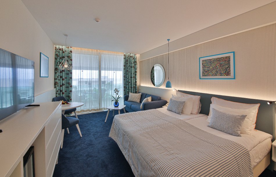 White Lagoon Resort este situat intre orasele Balcic si Kavarna, pe un golf frumos al Marii Negre, printre dealuri de coasta pitoresti, cu vederi spectaculoase asupra apelor Marii Negre. Natura nealterata, pacea si linistea inconjoara acest loc uimitor. In imediata apropiere se afla Balcic, Tuzla - cunoscut pentru centrul sau de tratare a namolului medicinal si resortul de golf Thracian Cliffs. Facilitati Doua cladiri hoteliere langa mare, care ofera cazare in 245 de studiouri si apartamente elegant echipate; Doua cladiri hoteliere in zona de parc care ofera cazare de 3* in 40 de camere duble; Doua restaurante - un restaurant principal tip bufet si un restaurant a la carte pe plaja. Patru baruri - bar in hol, bar la piscina, lounge bar si un bar pe plaja; Trei piscine pentru adulti, doua piscine cu tobogane de apa si o piscina pentru copii; Mini-club pentru copii si loc de joaca; Punct de intalnire a adolescentilor; Minimarket; Teren de joc multifunctional pentru tenis si floorball; Teren de fotbal; O sala de sport cu vedere panoramica la mare, dotata cu echipament Techno Gym; Sala de fitness - Aerobic, Zumba; Barci cu pedale; Alei lungi de 4 km potrivite pentru jogging si ciclism; Scena de spectacol pe plaja pentru animatie si concerte de seara; Amfiteatru; Acoperire internet Wi-Fi in intreaga statiune. Cazare Check-in incepe la ora 15:00; Check-out pana la ora 12:00 Complexul White Lagoon oferite trei tipuri de cazare Cladirile din zona de parc sunt clasificata la 3* Camera dubla park view(max.2+1,/1+2),(3+0 nu este posibil). Cele doua cladiri din zona de parc ofera cazare in camere duble cu suprafata de 12 mp fiecare, la un standard de 3 stele. Fiecare camera are doua paturi twin. Unul dintre paturi are o parte extensibila, unde copilul poate dormi cu parintele. In unele dintre camere exista posibilitatea unui pat suplimentar in camera, dar nu va mai exista spatiu suplimentar in camera - in acest caz nu se vor accepta reclamatii privind spatiul si confortul. Cladirile din zona de plaja sunt clasificate la 4*: Studio Standard aproximativ 34 mp (max. 2+2) . Studiourile ofera cazare confortabila de 4 stele si are un design scandinav elegant si elegant. Exista un pat king-size si o canapea in forma de L. Copiilor li se ofera cazare pe canapea in forma de L. Echipat cu televizor LCD cu TV prin satelit, aer conditionat, seif, internet WIFI, chicineta si balcon sau terasa. Apartament cu un dormitor: aprox. 48 mp; (max. ocupare 2+2/3+0; nu este posibil 3+1); apartament cu un dormitor si balcon cu vedere la mare. Unitatea are un design scandinav elegant si elegant. Fiecare apartament are un dormitor cu pat king-size 200x200 cm, living spatios cu chicineta complet utilata, canapea mare si unitate suplimentara cu paturi supraetajate 100x200 cm. De asemenea, Wi-Fi gratuit, TV, AC si telefon. Apartament doua dormitoare aprox. 97 mp; (max. ocupare 4+1/5+0) Apartament cu doua dormitoare cu vedere la mare. Unitatile au un design scandinav elegant si elegant. Fiecare apartament are living cu canapea mare si chicineta complet utilata, un dormitor cu pat king-size 200x200 cm, un dormitor cu doua paturi twin 100x200 cm si doua balcoane. Toate apartamentele cu doua dormitoare au trei televizoare LCD cu TV prin satelit, trei aparate de aer conditionat si Wi-Fi gratuit. Studio Royal with a private shared pool sunt situate la etajele 1 si 3 si au o suprafata de 34 mp. Ofera acces la o piscina privata comuna cu inca doua apartamente. Studiourile au terase mai mari cu masa din lemn si o banca, scaune si doua sezlonguri in fata piscinei private. Cazare maxima de doi adulti si doi copii. Exista un pat king-size si o canapea in forma de L. Copiilor li se ofera cazare pe canapea in forma de L. Echipat cu televizor LCD cu TV prin satelit, aer conditionat, seif, internet WI-FI si chicineta. Pachet de bun venit regal - bauturi racoritoare in minibar, ciocolata, chipsuri si fructe. Halate de baie pentru adulti si copii. Apartment Royal with a private shared pool sunt situate la etajele 1 si 3 si au o suprafata de 80 mp. Ofera acces la o piscina privata comuna cu inca doua apartamente. Apartamentele constau dintr-un dormitor principal cu pat king-size si TV, camera pentru copii cu 4 paturi supraetajate, un living cu canapea in forma de L, chicineta si masa cu scaune. Apartamentele regale au terase mai mari cu masa impadurita si o banca, doua sezlonguri, trei scaune din plastic si patru sezlonguri in fata piscinei private. Cazare maxima patru adulti si doi copii. Echipat cu televizor LCD cu TV prin satelit, aer conditionat, seif, internet WIFI si chicineta. Pachet de bun venit regal - bauturi racoritoare in minibar, ciocolata, chipsuri si fructe. Halate de baie pentru adulti si copii. Cladirea noua de 5*: Camera dubla deluxe - Aceste camere de 5* sunt situate in cladirea noua care a fost construita in mai 2019. Camerele duble deluxe constau dintr-un dormitor principal cu pat king-size, canapea extensibila, aer conditionat centralizat, minibar, smart TV cu TV prin satelit, seif. cutie si set cafea/ceai. 36 mp. (max 2+1 sau 3+0). Sport si divertisment: Gratuit: Complexul White Lagoon ofera oportunitati de practicare a diferitelor sporturi si este potrivit pentru grupuri sportive sau antrenamente individuale. Acesta cuprinde urmatoarele facilitati sportive: Un teren de joaca multifunctional - folosit pentru a juca tenis, volei, baschet etc. Dotat cu iluminat. Un teren de fotbal - utilizare gratuita, 4 km de alei potrivite pentru jogging si ciclism, Sporturi nautice - hidrobiciclete etc. - contra cost, O sala de sport dotata cu echipament de fitness Techno Gym - utilizare gratuita, Fitness - pentru gimnastica, Pilates si alte activitati, Umbrele si sezlonguri gratuite pe plaja sau piscine pentru fiecare camera. Internetul este disponibil in camere si in toate zonele publice. Exista computere gratuite de utilizat in zona receptiei. Contra cost: yoga, masaje, tratament medical, schimb valutar, fitness, golf, excursii, transfe