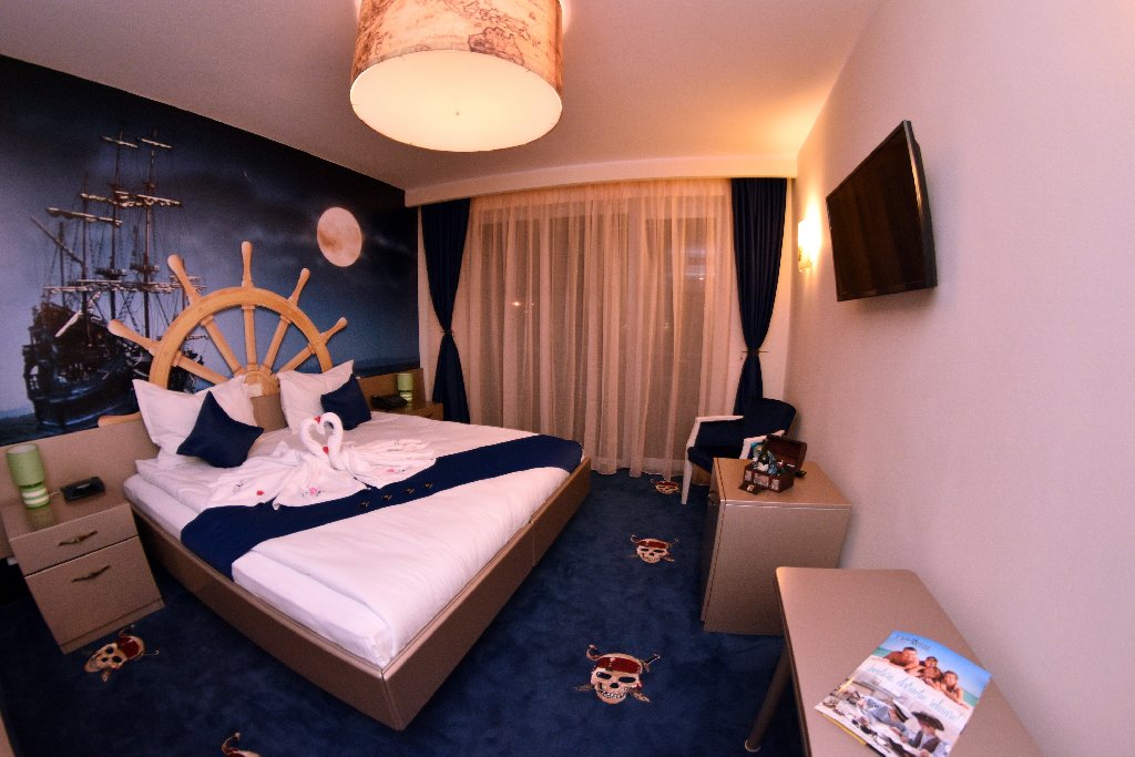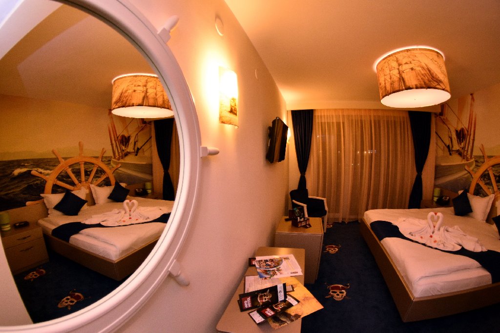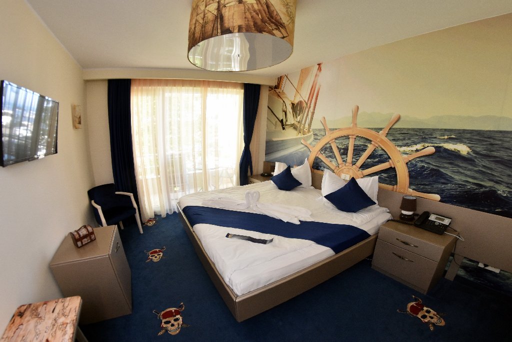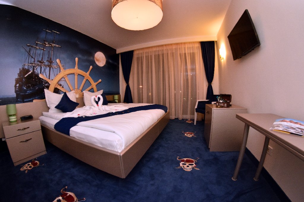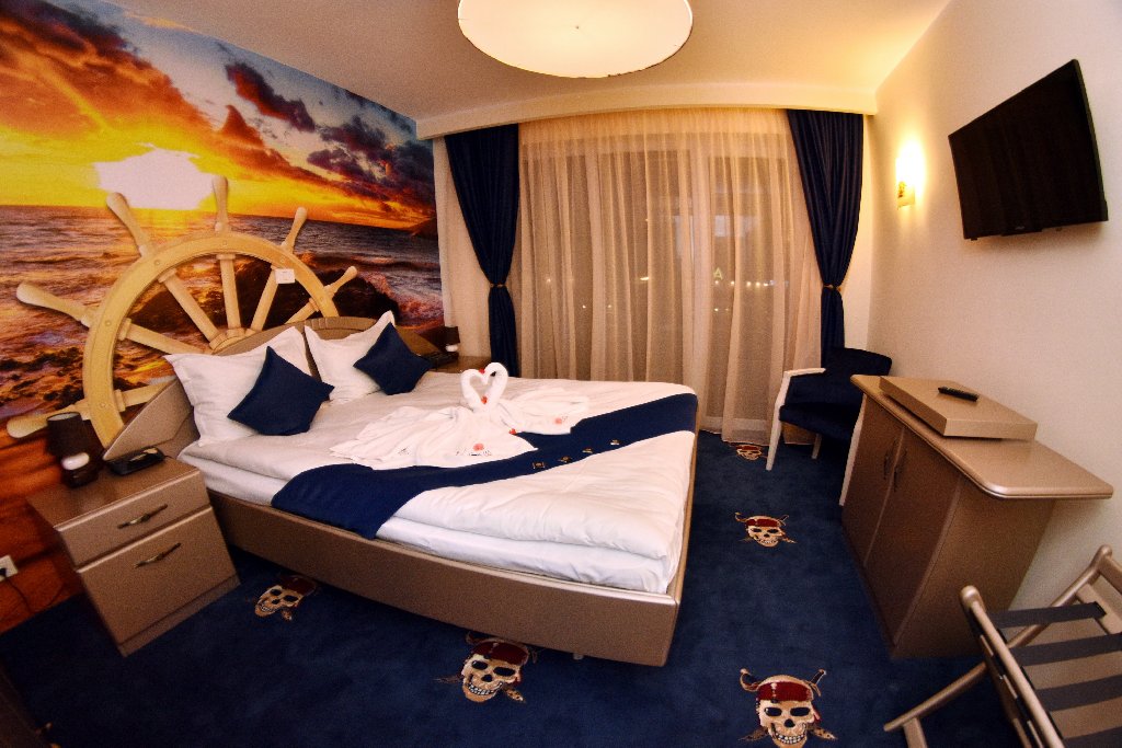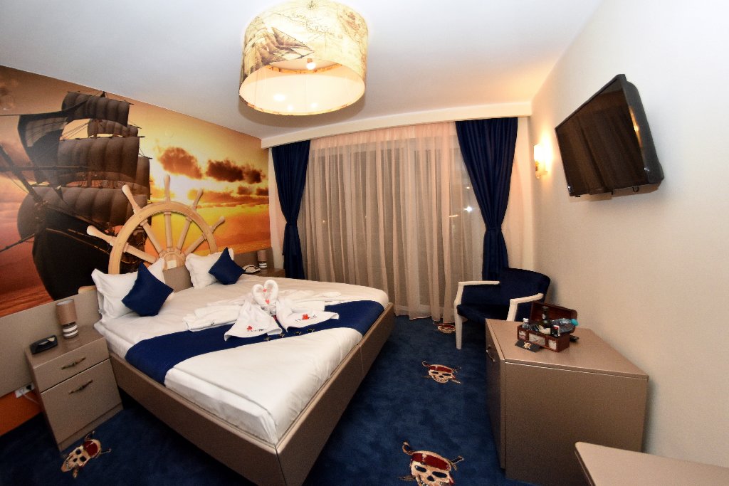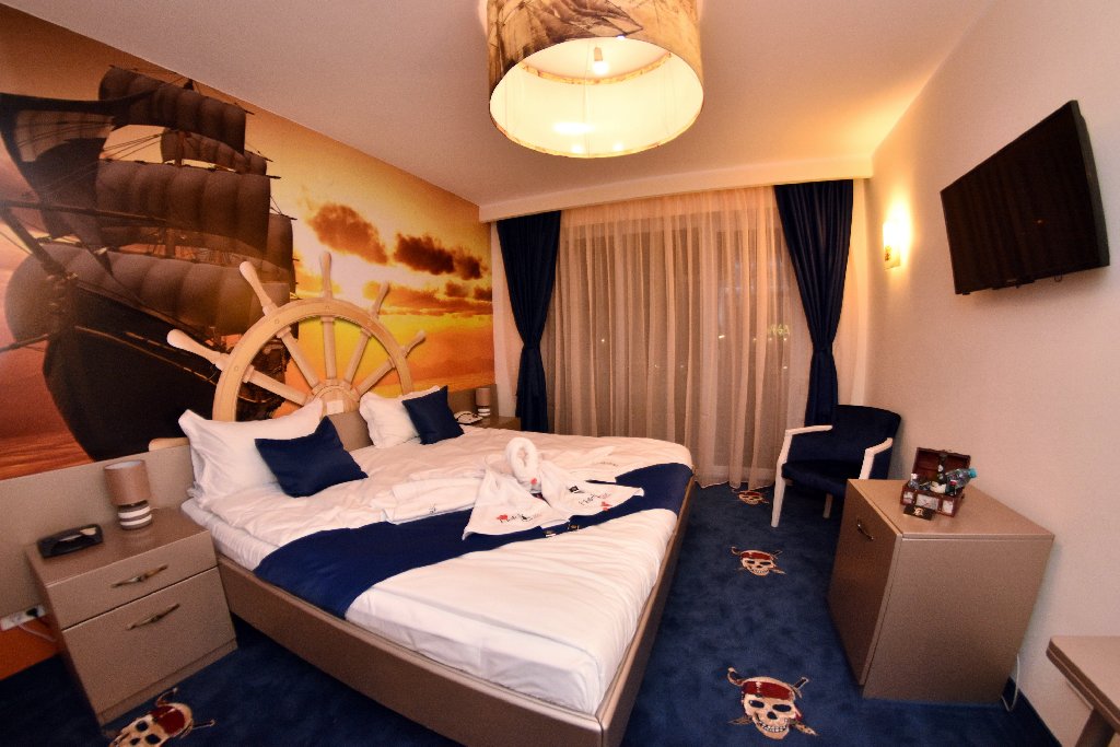 Localizare: Hotel Pirates Resort 3*** Mamaia (fost Hotel Bicaz), reclasificat la 3 stele, isi intampina turistii incepand cu vara 2016 cu un nou nume si un nou concept, prietenos atat cu cei mici dar si cu cei mari. Hotel Pirates Resort este un hotel tematic unic pe litoral, situat in nordul statiunii, la doar 10 de metri de plaja si se invecineaza cu hotelurile Vega, Apollo si Siret.
