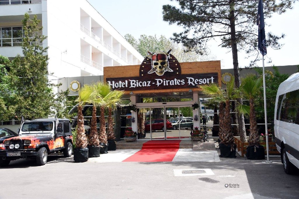 Localizare: Hotel Pirates Resort 3*** Mamaia (fost Hotel Bicaz), reclasificat la 3 stele, isi intampina turistii incepand cu vara 2016 cu un nou nume si un nou concept, prietenos atat cu cei mici dar si cu cei mari. Hotel Pirates Resort este un hotel tematic unic pe litoral, situat in nordul statiunii, la doar 10 de metri de plaja si se invecineaza cu hotelurile Vega, Apollo si Siret. Gold Pirate: - Produsul GOLD PIRATE ofera turistilor in perioada 01 iulie - 08 Septembrie servicii de masa ALL INCLUSIVE in regim buffet suedez, bauturi racaoritoare, ceai, suc, cafea, bauturi alcoolice: vinul casei, bere draft si o selectie de bauturi spirtoase. - Turistii GOLD PIRATE vor avea acces gratuit in sectorul de plaja PIRATES BEACH si vor avea la dispozitie 2 sezlonguri/camera. - Turistii GOLD PIRATE vor beneficia si de servicii de masa intermediare tip GUSTARI - GOLD PIRATE sunt si cei care opteaza pentru pensiunea completa in extra/low season. Singura diferenta consta in regimul de masa (a la carte-card valoric)