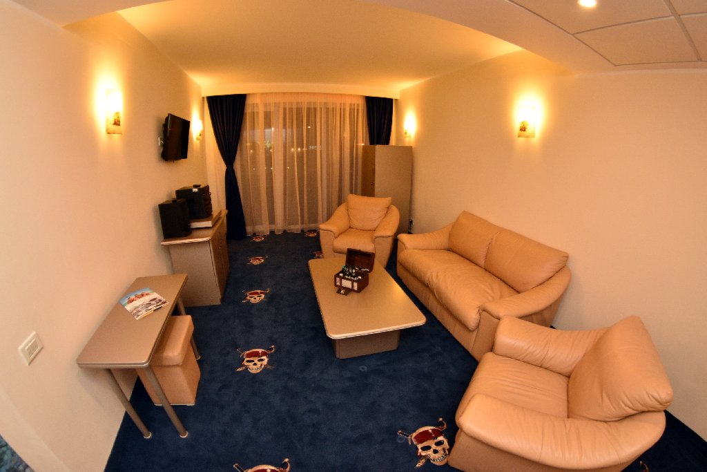 BEACH si vor avea la dispozitie 2 sezlonguri/camera. - Turistii GOLD PIRATE vor beneficia si de servicii de masa intermediare tip
