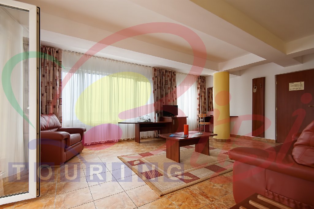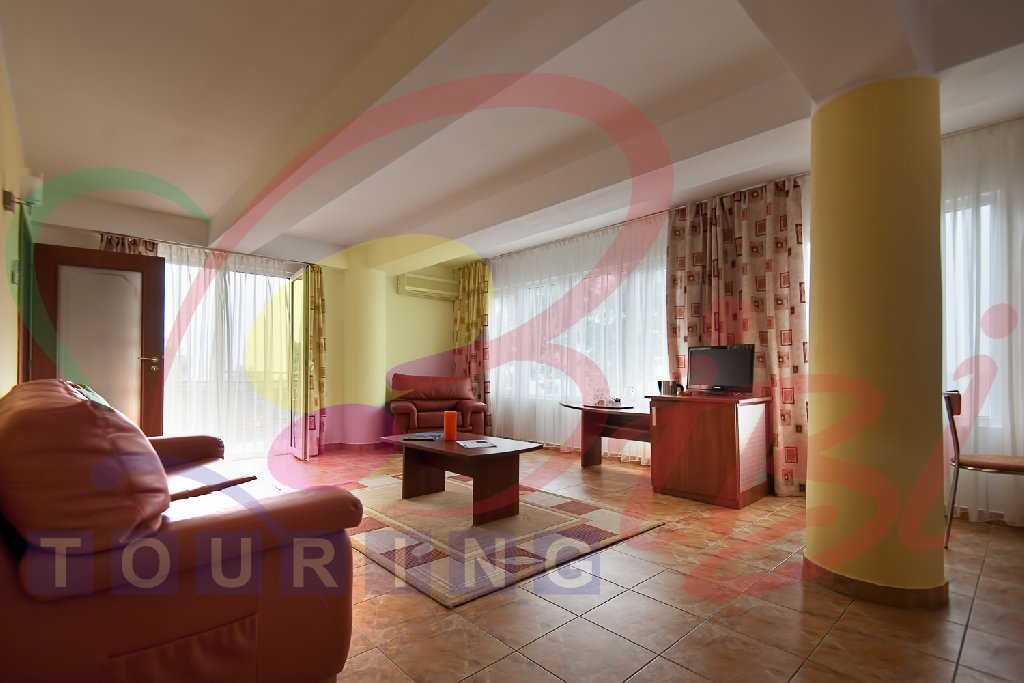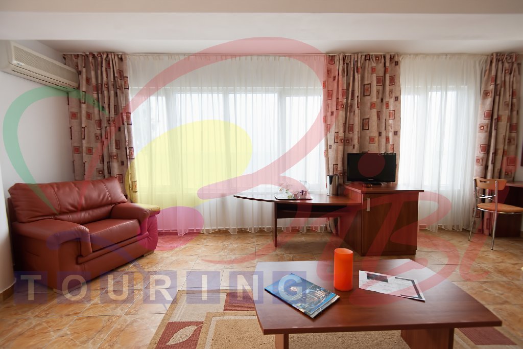 Camere: - Camerele duble a sunt dotate cu pat matrimonial sau twin, televizor, internet, balcon, aer conditionat si racitor. Capacitate maxima: 2 adulti + 1 copil (0 - 11,99 ani). In aceasta camera nu se poate pune pat suplimentar. - Superior Family (fostele camere superioare): este un singur spatiu de cazare, cu pat matrimonial, canapea extensibila, televizor, internet, aer conditionat si racitor ; intre zona de pat si canapea exista o perdeluta. Capacitate maxima: 3 adulti sau 2 adulti + 1 copil max 18 ani sau 2 adulti + 2 copii (0-17.99 ani) - Studio este un singur spatiu de cazare, cu pat matrimonial, canapea extensibila, televizor, internet, balcon, aer conditionat si racitor; Capacitate maxima: 3 adulti sau 2 adulti + 1 copil max 18 ani sau 2 adulti + 2 copii (0-17.99 ani) - Apartament (fostele garsoniere) a au living si dormitor, pat matrimonial si canapea extensibila, cu usa intre cele doua spatii , televizor in fiecare camera, internet, o singura baie, aer conditionat in living, si racitor. Capacitate maxima: 4 adulti sau 3 adulti sau 2 adulti + 1 copil max 18 ani sau 2 adulti + 2 copii (0-17.99 ani) - Apartament plus (fostele suite) a au living si dormitor, pat matrimonial si canapea extensibila, cu usa intre cele doua spatii , televizor in fiecare camera, internet, doua bai, aer conditionat in fiecare camera, si racitor. Capacitate maxima: 4 adulti sau 3 adulti sau 2 adulti + 1 copil max 18 ani sau 2 adulti + 2 copii (0-17.99 ani) - Apartament superior vedere panoramica (fostele apartamente cu living si dormitor) - au living si dormitor, pat matrimonial si canapea extensibila, cu usa intre cele doua spatii, televizor in fiecare camera, internet, doua bai, aer conditionat in fiecare camera, si racitor. Livingul are o vedere panoramica, superba, catre mare. Capacitate maxima: 4 adulti sau 3 adulti sau 2 adulti + 1 copil max 18