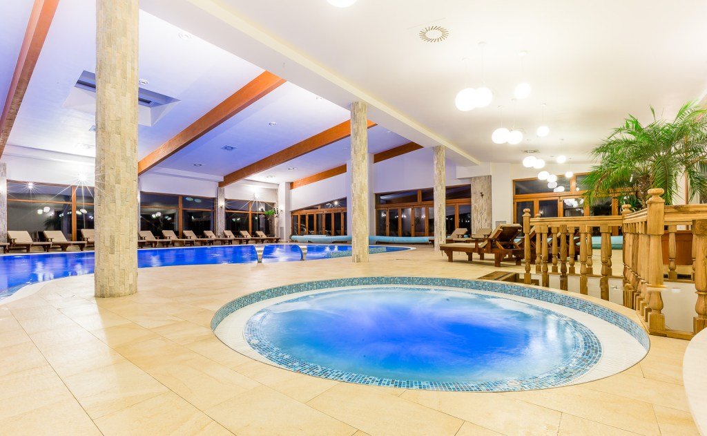 Spa si Wellness Centrul SPA isi asteapta oaspetii cu o piscina mare incalzita, un jacuzzi, o baie de sare, sauna uscata, sauna umeda, sala de fitness, o plaja in aer liber si un bar interior unde turisii se pot rasfata cu un suc de fructe proaspat stors.