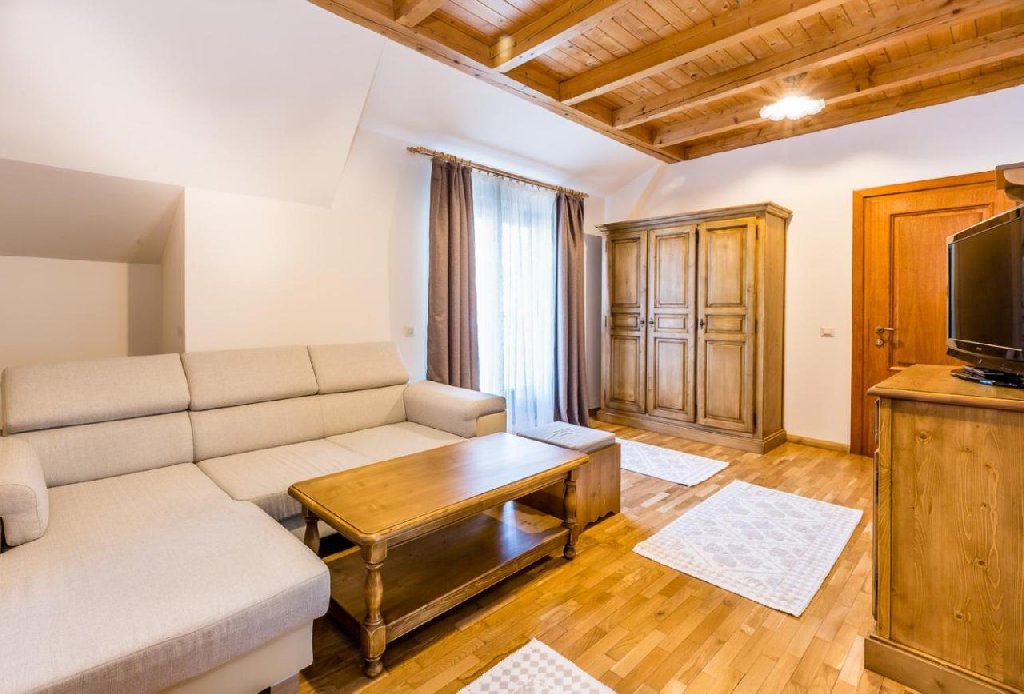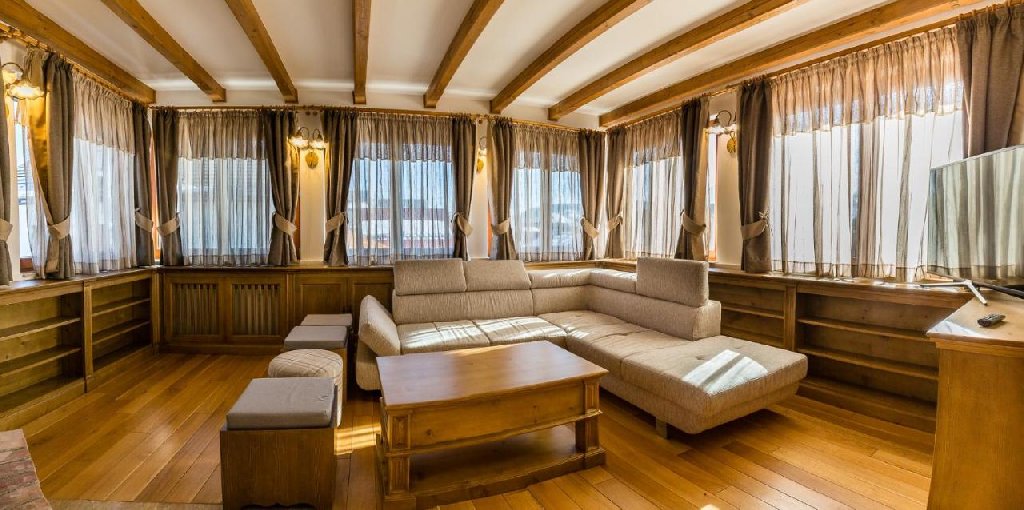 - 1 Apartament cu un dormitor (capacitate 4 persoane): acesta este situat la etajul al doilea, dispune de un dormitor dotat cu pat dublu matrimonial + un dormitor dotat cu doua paturi single, un living cu canapea extensibila, o baie comuna dotata cu jacuzzi (baie situata in camera cu patul dublu matrimonial) si o terasa proprie. - 1 Apartament cu doua dormitoare (capacitate 6 persoane): acesta este situat la etajul al doilea, dispune de doua dormitoare dotate cu pat dublu matrimonial+un dormitor dotat cu doua paturi single, un living cu canapea extensibila, o baie comuna dotata cu jacuzzi situata pe holul apartamentul si o terasa proprie. - 1 Suita ( capacitate 6 persoane): aceasta este alcatuita din 3 dormitoare, toate dotate cu pat dublu matrimonial + 1 baie comuna cu cabina de dus situata pe hol.
