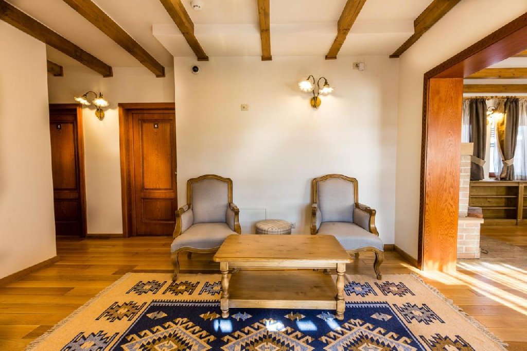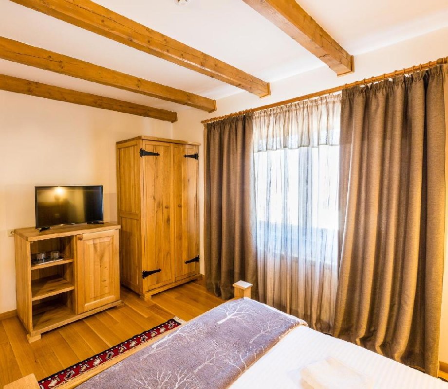 Camerele confortabile, impartite in doua cladiri, pot gazdui maxim 42 de persoane in: - 10 camere duble, - un apartament junior, - un apartament prezidential, - o suita de 3 camere duble.- 4 duble superioare Casa Dacilor -corp separat