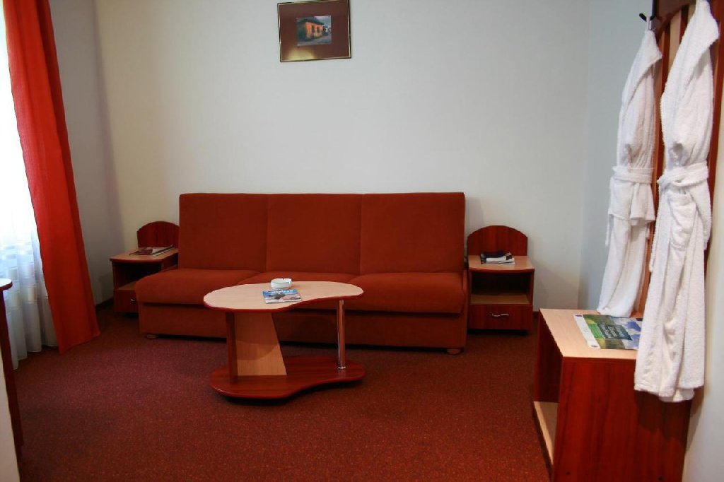 Decorul camerelor este conceput pe patru culori: bordo, bej, verde si albastru, fiecare culoare dandu-i camerei personalitate si farmec propriu. Dotarile sunt la nivelul de 3* stele, adica acestea au: - mobilier elegant; - minibar - televizor color; - televiziune prin satelit; - telefon; - internet prin sistem wireless; - baie propirie dotata cu cabina de dus si uscator de par.
