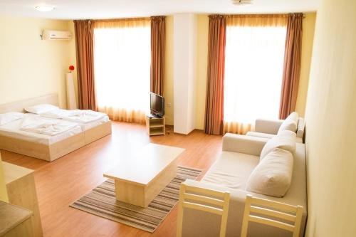 Localizare: Hotelul Anixi este situat in Obzor la doar 150 de metride plaja. Aeroportul din Burgas se afla la 41 km distanta de hotel, iar cel dinVarna la 46 km. Plaja Irakli se afla la 8 km distanta, iar plajele Chaika,Beach Bar si Dyuni se afla la 19 km distanta. Faciltitati: acest complex a fost construit in anul 2008, oferindposibilitatea turistilor de a se caza in apartamente mobilate complet. Complexuleste dotat cu restaurant, bar, terasa la soare si piscina exterioara pentruadulti si copii cu sezlonguri si umbrele gratuite in limita disponibilitatii.Este disponibil un transfer de la/ la aeroport. Alte facilitati: Internetwireless gratuit in tot hotelul si parcare in limita disponibilitatii. Animalelede companie nu sunt acceptate. Camere: dotate cu TV, aer conditionat, frigider, baie cu dus, chicinetautilata si balcon.