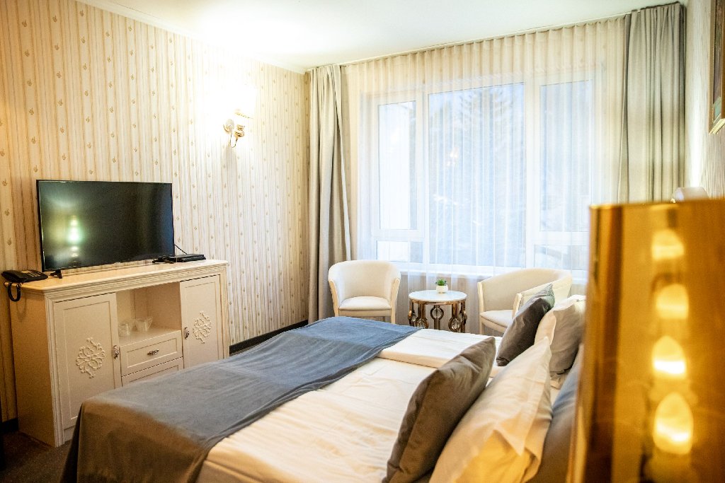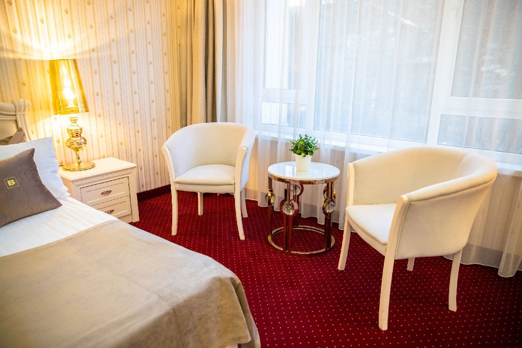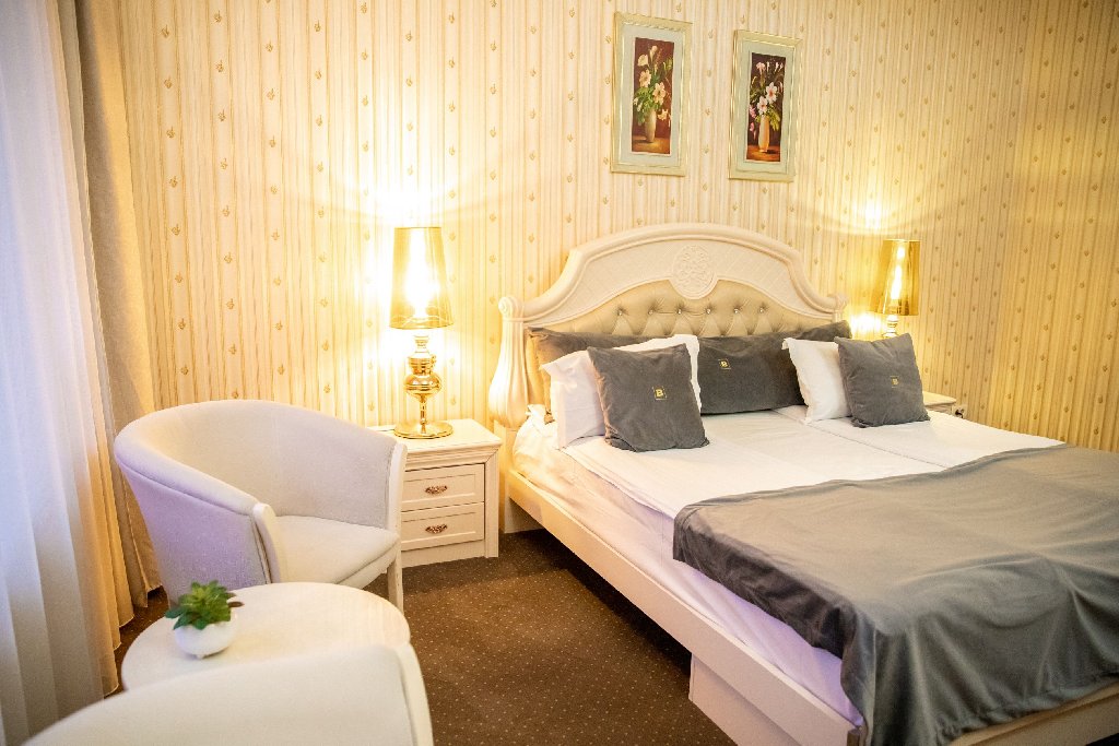Toate spatiile de cazare sunt dotate la standarde internationale si dispun de baie individuala. Hotelul are un cadru intim, primitor, unde modernul se impleteste foarte bine cu inalta calitate a serviciilor.