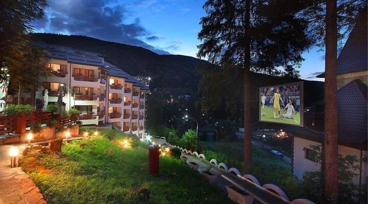Complexul hotelier Dobru este situat pe versantul estic al Carpatilor Orientali, in pitoreasca statiune Slanic Moldova, la o altitudine de 530 de metri. Cladirea este construita in trepte, pe un perete stancos abrupt aflat chiar de-a lungul cursului paraului Slanic. Oferte sejur minim 2 nopti cu mic dejun si masa in sistem fisa cont.