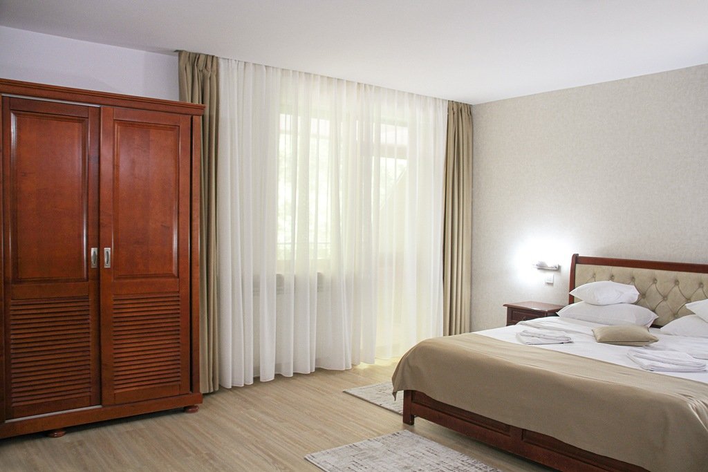 Camerele dispun de baie cu cabina de dus, uscator de par, cosmetice, prosoape, halat de baie, papuci de unica folosinta, minibar, tv LCD, seif, telefon, balcon cu mobilier de ratan, acces cu cartela magnetica. Patul suplimentar se ataseaza doar in camerele duble superioare sau camera dubla de lux, acestea avand o suprafata mai mare.Tipuri de camere: 23 camere duble standard matrimoniale, 5 camere duble standard twin, 6 camere duble superioare/ de lux, 3 camere duble twin fara balcon, 3 apartamente standard, 1 apartament superior.
