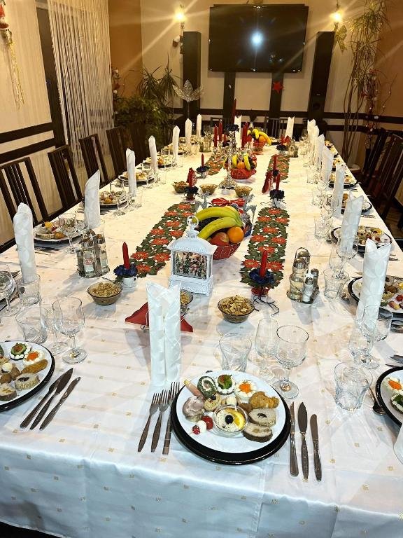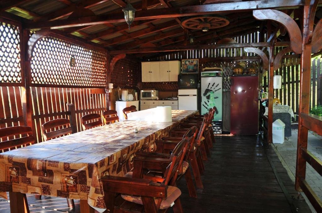 Facilitati: - living spatios pentru intruniri, petreceri, mese festive, etc. - terasa acoperita cu 14 locuri dotata cu gratar, ceaun, aragaz, frigider, tv, etc. - loc de joaca pentru copii, balansoar si leagan,loc pentru plaja,curte cu verdeata, parcare proprie,internet wireless