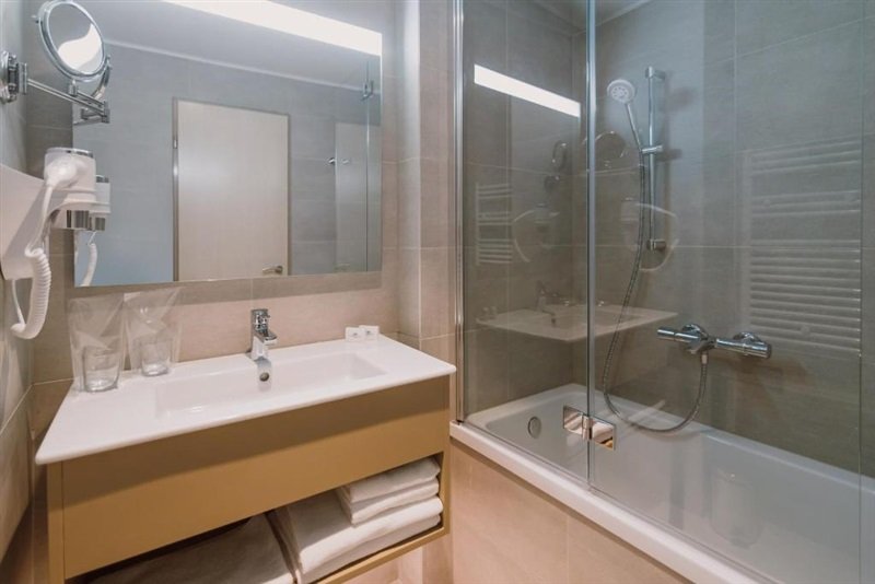Facilitati generale: receptie cu program nonstop, restaurant, bar, lounge/camera cu TV comuna, piscina interioara incalzita cu apa sarata, bar la piscina, centru spa, baza de tratament, 3 sali de conferinte, facilitati pentru persoane cu mobilitate redusa si internet wifi.
