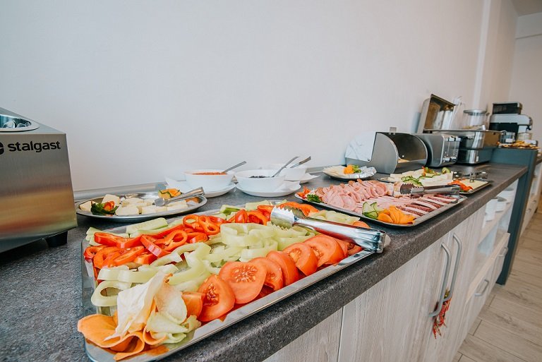 Oaspetii din cadrul acestei unitati pot savura un mic dejun tip bufet suedez. Zona de BBQ ofera oaspetilor ocazia de a se bucura de compania celor dragi in serile de vara. De asmenea, unitatea dispune de un bar unde se pot servi bauturi racoritoare, cafea si prajituri.